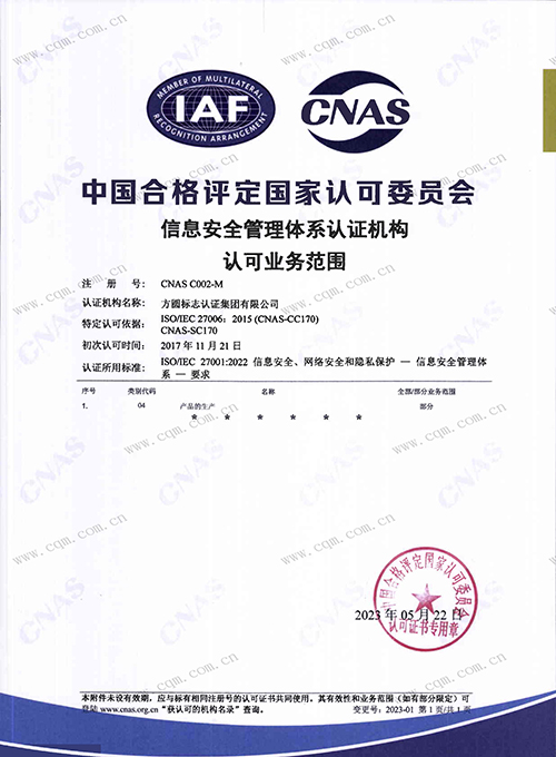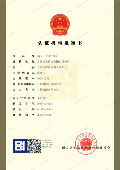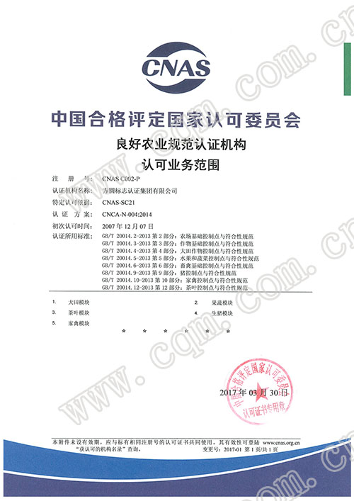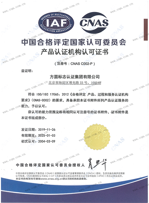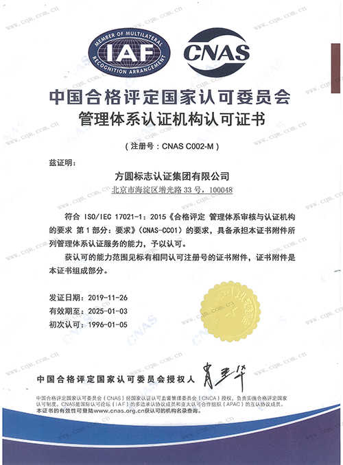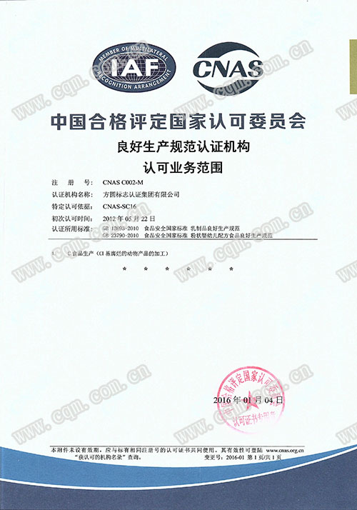 危害分析與關鍵控制點(HACCP)體系認可證書