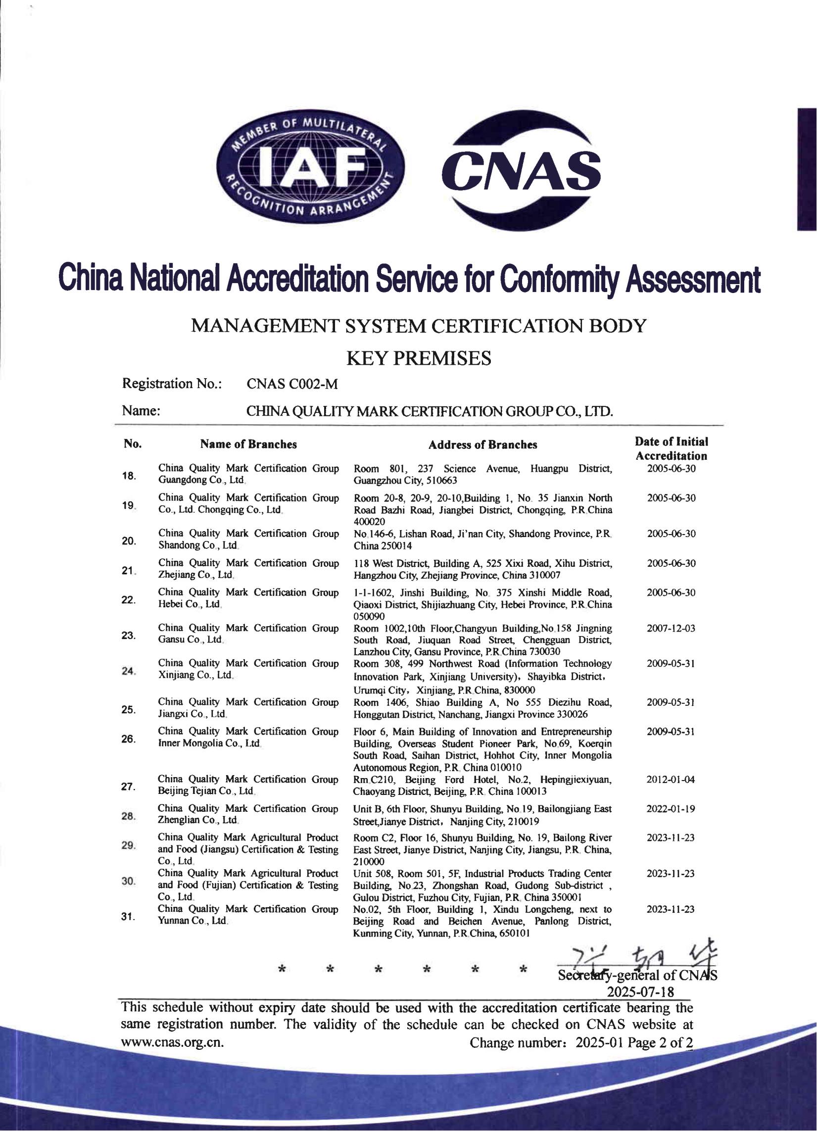 認證機構認可證書(中文)