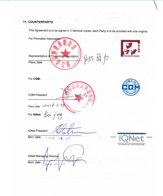 時(shí)間:2018年08月15日 經(jīng)歷了2年多的不懈努力,近日浙江省品牌建設(shè)聯(lián)合會(huì)、方圓標(biāo)志認(rèn)證集團(tuán)與國(guó)際認(rèn)證聯(lián)盟(IQNet)之間的三方合作協(xié)議正式簽訂,“浙江制造”認(rèn)證制度成功登錄國(guó)際認(rèn)證聯(lián)盟的GAPP(Global Approach to Product Portfolio)平臺(tái)。這也意味著這項(xiàng)高標(biāo)準(zhǔn)、高規(guī)格的認(rèn)證制度獲得國(guó)際認(rèn)證聯(lián)盟的承認(rèn),標(biāo)志著“浙江制造”認(rèn)證制度走向世界。