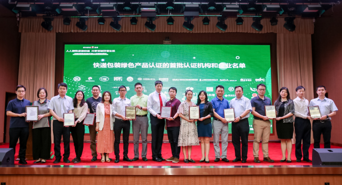 在國家市場監督管理總局和國家郵政局主辦的2021年“世界認可日”系列活動——快遞包裝綠色產品認證推進活動上,方圓標志認證集團邀請了四家獲證企業代表到現場參加全國首批快遞包裝綠色產品認證證書的頒證儀式。