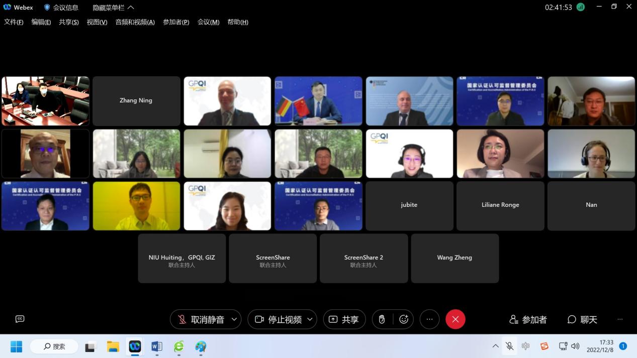 時間:2022年12月12日 2022年12月8日,中德合格評定合作工作組年度會議以視頻方式召開。認證監(jiān)督管理司國際處與德國聯(lián)邦經(jīng)濟與氣候保護部數(shù)字與創(chuàng)新政策司認可、計量、PTB、 BAM和DAkkS監(jiān)管處攜雙方政府部門、企業(yè)、合格評定機構(gòu)等代表與會。