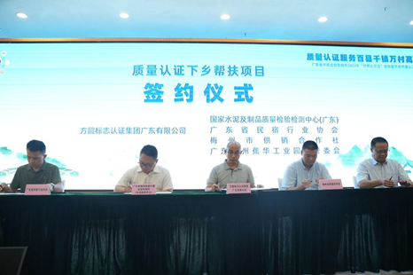 方圓廣東公司承辦由廣東省市場監(jiān)管局與梅州市人民政府在蕉嶺縣長潭鎮(zhèn)聯(lián)合舉辦的“質(zhì)量認證服務(wù)百縣千鎮(zhèn)萬村高質(zhì)量發(fā)展”主題活動,共同啟動廣東省質(zhì)量認證下鄉(xiāng)活動。活動現(xiàn)場,方圓廣東公司常務(wù)副總經(jīng)理熊飛彪帶領(lǐng)12家機構(gòu)代表同臺宣讀“質(zhì)量認證服務(wù)百縣千鎮(zhèn)萬村高質(zhì)量發(fā)展倡議”。方圓廣東公司分別與梅州市供銷合作社、廣東省民宿行業(yè)協(xié)會、梅州焦化工業(yè)園區(qū)管委會簽署質(zhì)量認證幫扶協(xié)議,與國家水泥及制品質(zhì)量監(jiān)督檢驗中心(廣東)簽署綠色產(chǎn)品綠色建材檢測認證合作協(xié)議。在與當?shù)貐髽I(yè)的業(yè)務(wù)咨詢交流環(huán)節(jié),與梅州淦源建材科技有限公司簽署了綠色建材產(chǎn)品認證、質(zhì)量、環(huán)境、職業(yè)健康安全管理體系認證、產(chǎn)品碳足跡等服務(wù)合作意向書。