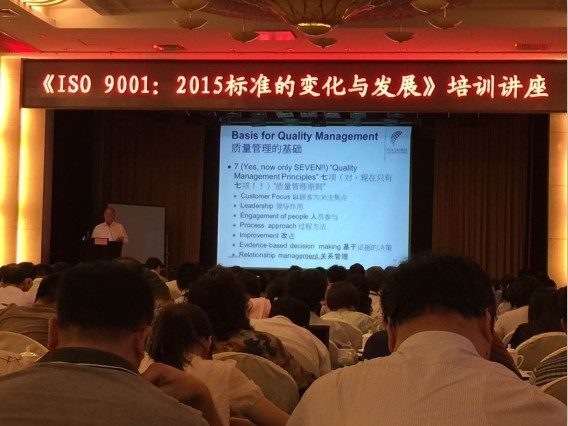 在講座中,ISO第176個(gè)技術(shù)委員會的Nigel.H .Croft博士對ISO9001修訂的背景、管理體系標(biāo)準(zhǔn)的統(tǒng)一-《ISO指令附件SL》等、ISO9001:2015轉(zhuǎn)換安排等內(nèi)容進(jìn)行詳細(xì)介紹,與會者就評審和審核將面臨的潛在問題和建議逐條進(jìn)行了研討。