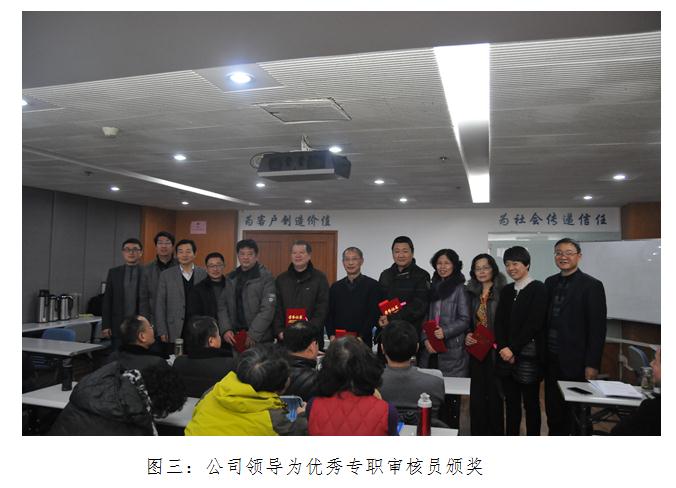 在下午召開的審核員表彰會議上,施曉彥總經理充分肯定了全體審核員一年來所取得的成績,并對大家的辛勤付出和無私奉獻致以誠摯的感謝。號召大家同心協力,再接再厲,全面完成2016年的各項工作任務。韓大華副總經理宣讀了2015年度優秀審核員、優秀審定人員、榮譽員工及主題征文獲獎情況等表彰決定文件,公司領導分別為獲獎人員頒獎,勉勵全體審核員見賢思齊,奮發工作,在崗位上再立新功。