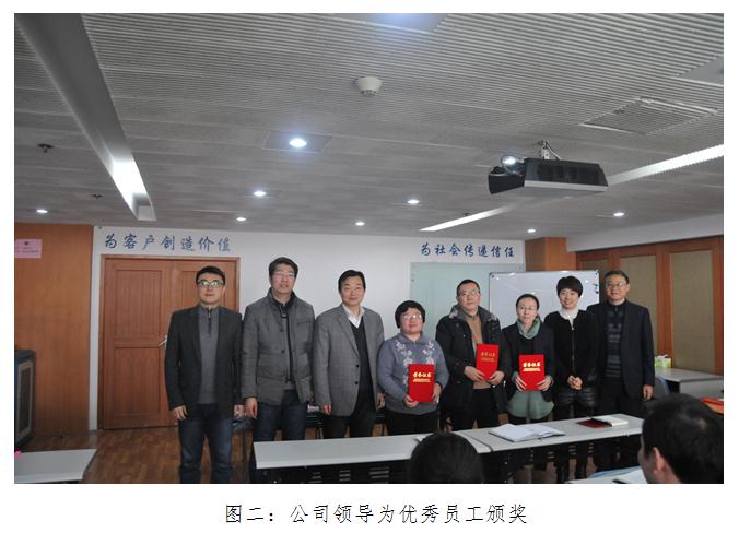 施曉彥總經理發表了熱情洋溢的講話,他代表公司領導班子向大家致以新春的慰問和誠摯的祝福,并從重視黨群工作,加強內部管理,創新項目研發,強化市場開拓,優化審核方案管理,提升客服能力,加大培訓開發等方面對2015年度公司經營運作情況進行全面總結;基于國家整體經濟形勢嚴峻、同業競爭加劇及監管力度加強等組織環境因素,分析機構的競爭優勢與劣勢、機會和威脅,進一步明確了公司“十三·五”戰略發展方向,系統部署2016年度重點工作。