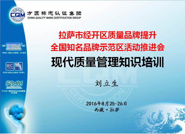 時間:2016年09月09日 為響應江蘇對口支援拉薩工作,深入貫徹國務院《貫徹實施質量發展綱要2016年行動計劃》,進一步落實《拉薩市人民政府關于加強質量建設的若干意見》和質量強市戰略,積極推廣先進的質量管理方法,提升企業質量管理水平,倡導企業走質量效益型發展道路,應拉薩市質量技術監督局的邀請,2016年8月24至28日方圓江蘇公司派出專家組赴西藏拉薩市舉辦現代質量管理知識培訓、推進拉薩知名品牌示范區建設專題活動。