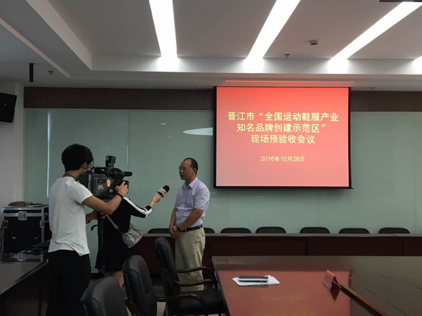 公司鄭錦富經理在知名品牌創建示范區現場預驗收現場接受媒體采訪