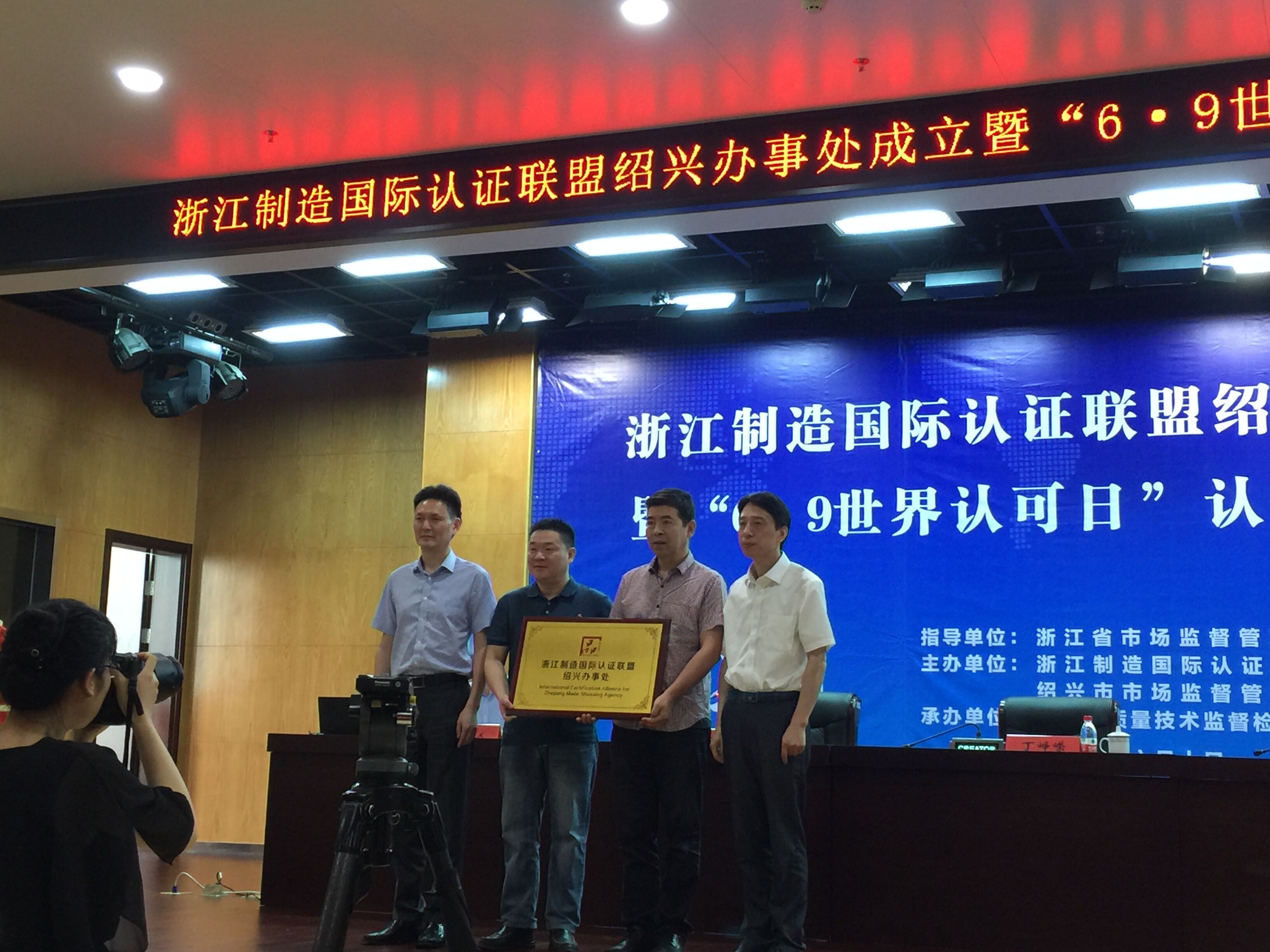 會上,省市場監管局合格評定處領導、浙江制造國際認證聯盟主席,一同為紹興市市場監管局科技評管處負責人和紹興辦事處負責人授牌,并分別做了講話,對今后的工作提出思路和期望。