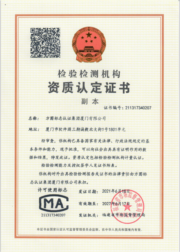未來,方圓廈門公司將繼續擴充其他項目檢測能力的資質認定,逐步完善并夯實綜合服務能力,服務企業、服務社會,實現“提供專業的認證和管理技術服務,確保認證公信,提升客戶績效,創造社會價值”的企業使命。