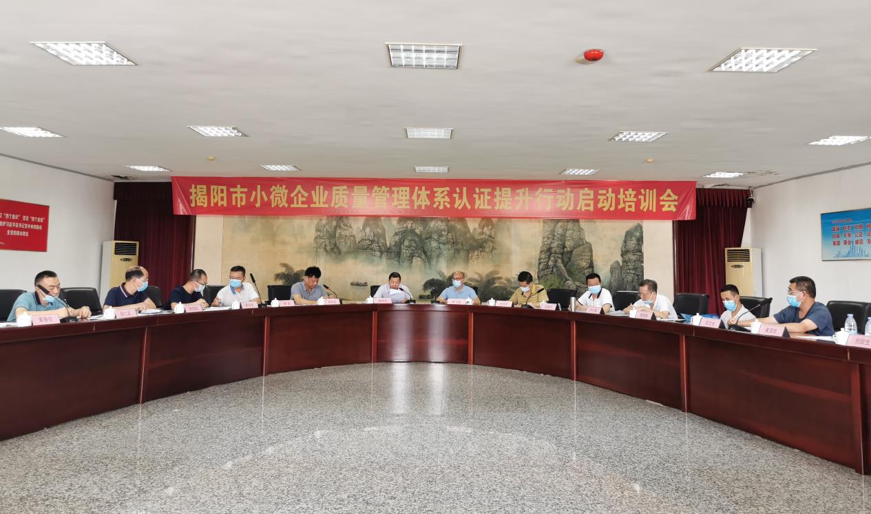 近日,揭陽市市場監管局召開揭陽市小微企業質量管理體系認證提升行動啟動培訓會,對小微企業質量管理體系提升試點工作進行再動員、再部署。揭陽市市場監管局魏總工程師出席會議并作講話,市局認監科有關人員,普寧市局、空港分局、產業園分局分管領導和負責認證工作的股室負責人,方圓標志認證集團廣東有限公司熊飛彪常務副總經理、呂學權市場部經理和全市5家試點企業負責人和質量管理員參加了會議。